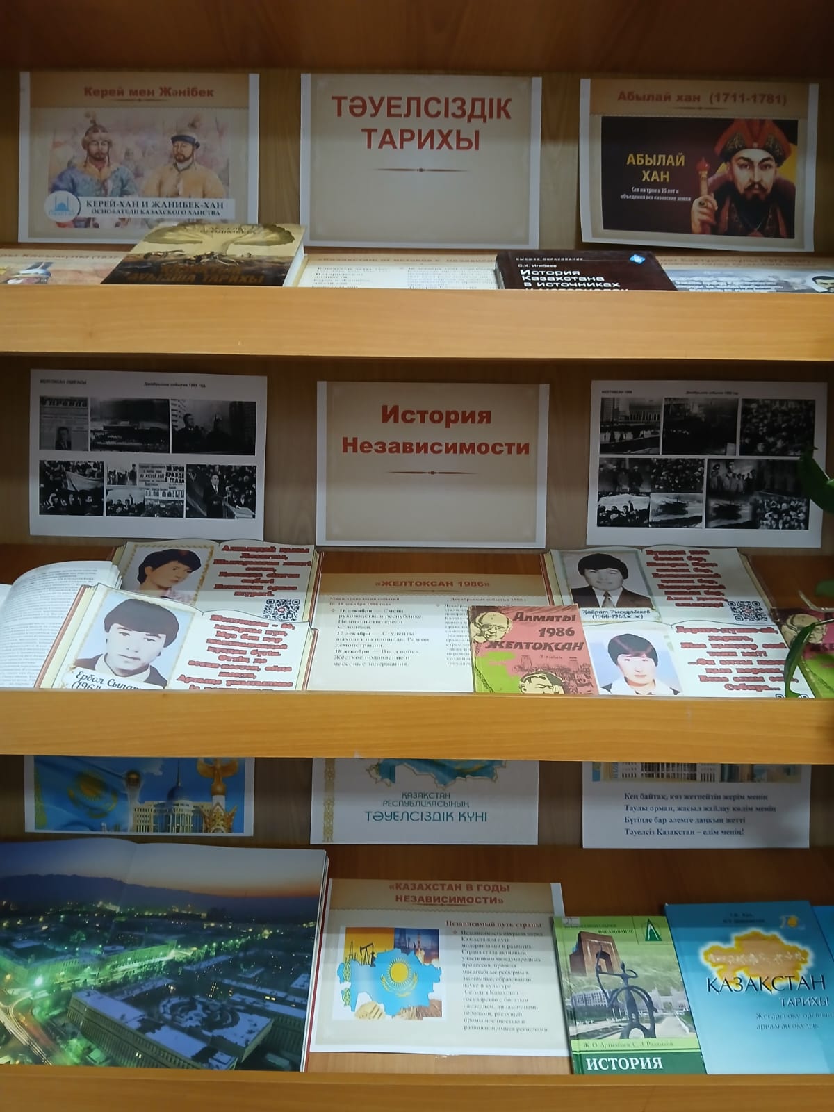 Негізгі мемлекеттік мерекелердің бірі-Қазақстан Республикасының Тәуелсіздік күні қарсаңында "Жоғары Қазақ гуманитарлық - техникалық колледжі" кітапханасында егемен мемлекеттің қалыптасу тарихына, оның мәдени құндылықтары мен жетістіктеріне арналған "Тәуелсіздік тарихы", атты тақырыптық кітап көрмесі ұйымдастырылды.Экспозицияның негізгі міндеті-оқырмандарға ел өткен тарихи жолдың маңыздылығын еске салу, тәуелсіз Қазақстанның дамуының негізгі кезеңдерімен таныстыру және ұлттық мұраның байлығын көрсету. Көрме жастарға патриоттық тәрбие беруге, азаматтық бірегейлік пен отан тарихына деген қызығушылықты нығайтуға бағытталған.