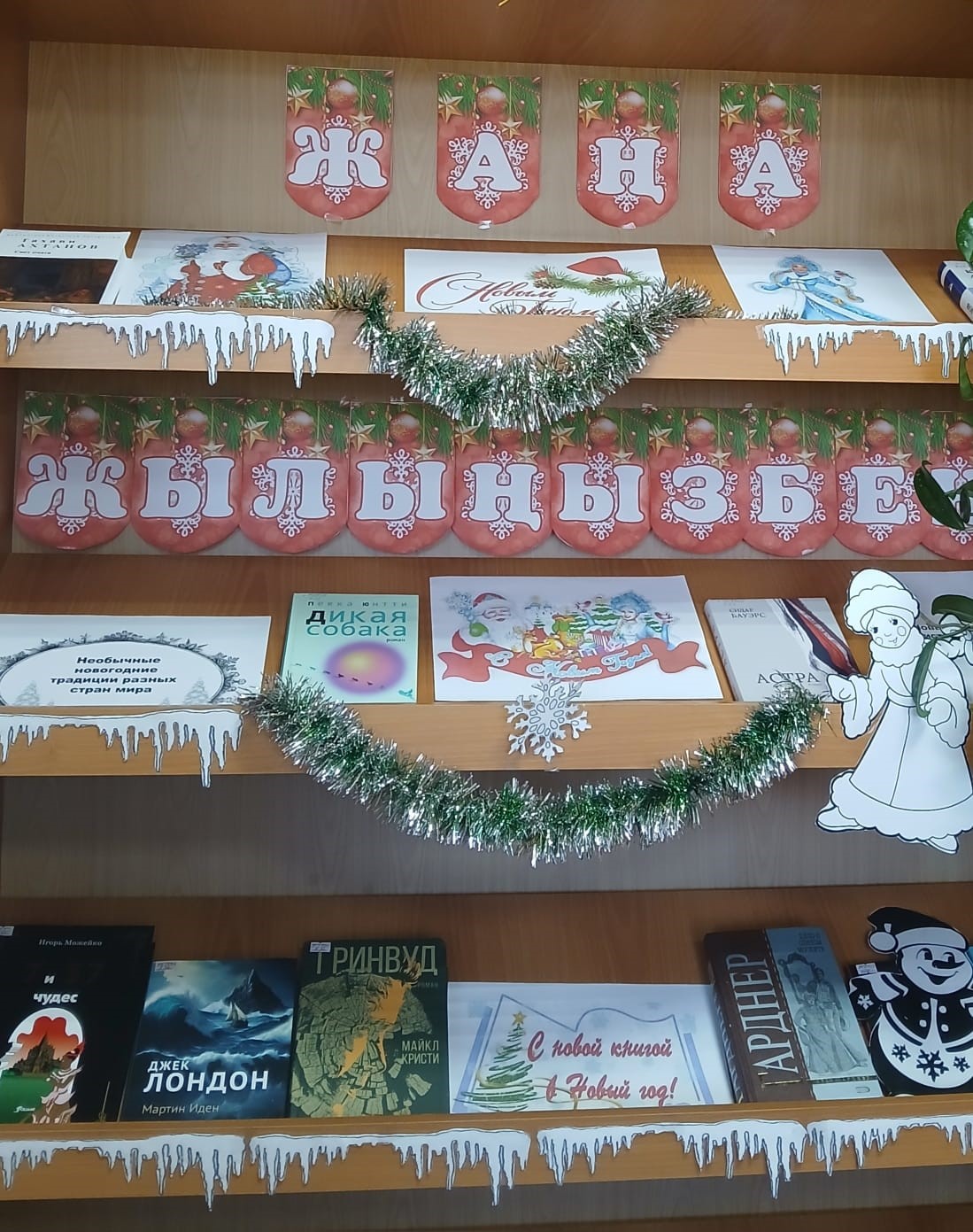 Жаңа жыл қарсаңында "Жоғары Қазақ гуманитарлық-техникалық колледжі" кітапханасының оқу залында оқырмандарды сиқыр, жылулық және қысқы ғажайыптар атмосферасына енуге шақыратын "Жаңа жылдық көңіл-күй" атты мерекелік кітап көрмесі рәсімделді.