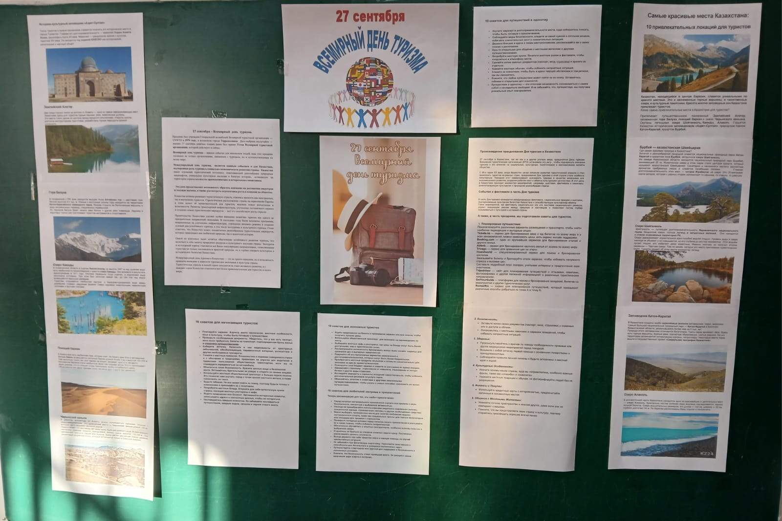 В честь этого знаменательного события в библиотеке колледжа оформлен флешбук «Путешествуем по Казахстану». Цель: пропаганда туризма и здорового образа жизни, знакомство читателей с уникальными природными заповедниками Казахстана.